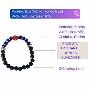 Pulseira Exu Crânio Tranca Ruas Pedra Vulcânica e Cristal