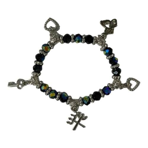 Pulseira Exu Cristal Preto AB Pingentes Prata e Silicone Pulseira Exu Cristal Preto AB Pingentes Prata e Silicone