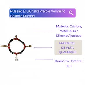 A Pulseira Exu Cristal Preto e Vermelho Cristal e Silicone da Bialluz possui pedras de alta qualidade feitas de forma artesanal com muito carinho. Com tamanho único, é perfeita para qualquer pessoa. Cheia de boas energias e carregada de fé nossa pulseira emanará muita paz em sua vida!