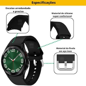 Variedade: As pulseiras de silicone estão disponíveis em uma ampla variedade de cores, permitindo que você personalize o visual do seu galaxy watch6 de acordo com seu estilo pessoal. Você pode escolher entre cores vibrantes ou neutras.