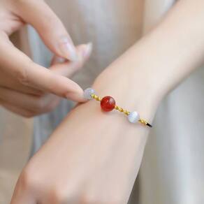 Tamanho: Diâmetro do cordão 8/10 mm Material: ágata Ágata vermelha natural e calcedônia Apresenta contas redondas lisas de 8 a 10 mm feitas de ágata vermelha genuína e calcedônia branca, simbolizando paixão, equilíbrio e clareza. Design minimalista elegante Uma combinação simples, mas atraente, de tons quentes de vermelho e branco suave, acentuados por finos nós dourados que refletem o refinamento cultural. Construção durável em cordão preto Projetado com um cordão forte e ajustável para conforto diário e um ajuste seguro na maioria dos tamanhos de pulso, ideal para uso diário a longo prazo. Símbolo do amor e da lembrança Inspirada no simbolismo tradicional da saudade do “feijão vermelho”, esta peça carrega um significado emocional e uma beleza espiritual sutil. Versátil para qualquer ocasião, seja estilizada com roupas casuais ou tradicionais, a pulseira oferece uma fusão harmoniosa de simplicidade e expressão simbólica.
