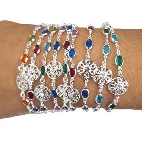 Pulseira Feminina 16/20cm Colorida + Flor Folheado Prata PL518 Pulseira Feminina 16/20cm Extensor 4gr Colorida + Flor Strás Fecho Boia Beleza e Qualidade Sempre -marca: Wnbijouterias -tamanho Pulseira: 16/20cm -modelo: Flor Strás + Pedra Sintetica Colorida -largura: Flor Strás 10mm -modelo Fecho: Boia -peso: 4Gr -SKU Vendedor: PL518 Descrição Técnica: - Produto com banho super resistente. - Processo de Folheação em varias camadas Prata Pura 1000 - Não descasca, não perde a cor, qualidade garantida - Grande tempo de durabilidade. - Acompanha Saquinho porta Jóia. - Todas as Fotos são Reais do Produto Acompanha: Certificado de - apenas para descascamento do banho da jóia. -A não cobre defeitos de mau uso, aranhões ou quebra de partes da jóia. Contra Indicações: - Não usar creme, perfume, protetor solar e outros cosméticos por cima da jóia. - Evitar banho de mar Devido a oxidação da água Salgada - Evitar banho de piscina Devido a oxidação do Cloro e outros produtos Marca: Não Informado