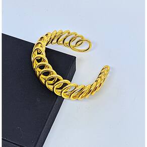 Pulseira rígido tipo Bracelete de aço em círculos dourados de design moderno, perfeito para qualquer ocasião. É feito de aço, o que o torna durável e resistente à água e ao desgaste. É hipoalergênico, o que o torna seguro para pessoas com pele sensível ou alergias.