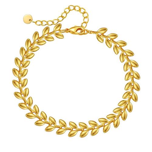 Tamanho: 0,5 x 17+5 cm Peso: 4 g Material: aço inoxidável Design elegante de elos de folha — Inspirada em talos de trigo e galhos de oliveira, esta pulseira apresenta elos lisos e arredondados para uma estética natural e graciosa. Acabamento em tom dourado 18K — Revestida com acabamento dourado refinado para uma aparência luxuosa e atemporal que aprimora o traje casual e formal. Extensão de corrente ajustável — Projetada com uma base de 17 cm de comprimento e uma corrente de extensão de 5 cm, fornecendo um ajuste personalizável para vários tamanhos de pulso. Leve e durável — Pesando apenas 4 g, esta pulseira é feita de aço inoxidável resistente para um brilho duradouro e conforto diário. Estilo versátil para mulheres — perfeita para usar em camadas ou sozinha, esta pulseira de estilo vintage complementa guarda-roupas boho, minimalistas ou elegantes com facilidade.