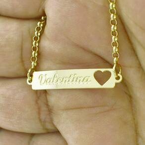 Linda pulseira feminina com o nome gravado e banhada em ouro 18 kilates