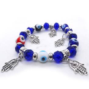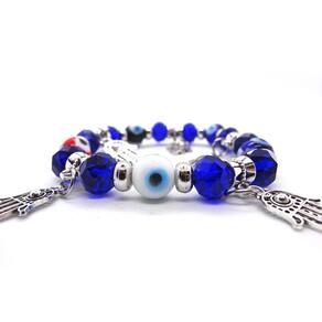 Linda pulseira feminina com olho grego e Mão de Fátima para você levar a proteção sempre ao seu lado.