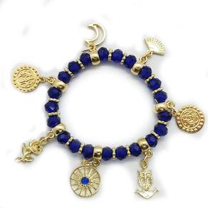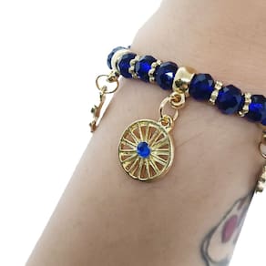 Linda pulseira feminina com pedras azuis e acessórios e prata. A Santa Sara, padroeira do povo cigano, da mulheres que querem engravidar, do bom parto, dos exilados e dos desesperados, tem sua data comemorativa em 24 de Maio.
