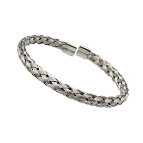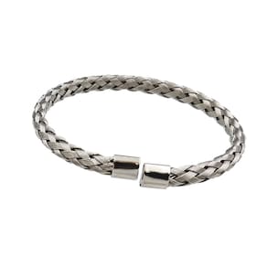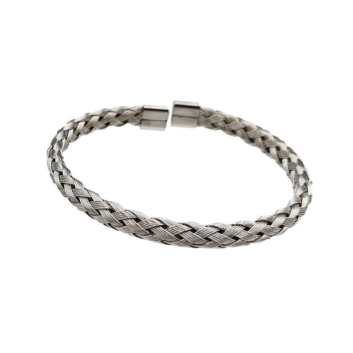 Pulseira Feminina Trançadas Bracelete Prego Moda Aço Inox - Cor: Prata