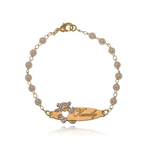 Pulseira Floratta Joias Personalizada Pérolas Chapada Nome Ursinho Banhado em Ouro 18K Dourado Infantil