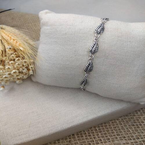 Pulseira de prata com dez folhas. Este é um acessório indispensável para quem procura um look cheio de estilo. Aproveite e faça combinações com outraspulseiras e veja também todas as nossas peças deprata envelhecida pra fazer aquela composição perfeita.