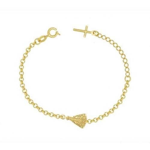 Pulseira Folheada N Sr Aparecida Alongador com Cruz. -largura: 0.85cm. -comprimento: 22cm. -peso: 2,2gr. Folheado a Ouro - Dicas para melhor conservar seu produto: Recomenda-se não usá-lo durante limpeza doméstica, banho de chuveiro, piscina, praia ou qualquer outra situação . Evite contato com substância ácidas, que contenham álcool, assim como outras substância químicas e/ou abrasivas como lixa, palha de aço, etc. Guarde-o separadamente dentro de sua própria embalagem. Seguindo essas recomendações seu produto durará muito tempo sem perder a beleza e qualidade. de 6 meses no banho e inclusa. Marca: Galle