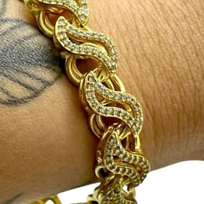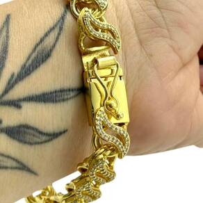 Pulseira Friso S 12mm Cravejada Pedras Brilhantes Ouro 18K Detalhes do Produto: Material: ligas metálicas de alta qualidade, especialmente tratadas para fixação e absorção do ouro, com acabamento em verniz protetor. Aparência: visual idêntico ao ouro maciço. Produção: artesanal, com atenção meticulosa aos detalhes. Banho: 10 camadas espessas de ouro 18k, finalizadas com verniz antialérgico . Elos: soldados varia conforme o modelo . Pedras: zircônias brilhantes cravejadas quando aplicável . Tamanhos Disponíveis: Cordões Masculinos: 70cm padrão e 60cm sob consulta/Pedido Via Chat . Cordões Femininos: 50cm padrão e 45cm sob consulta/Pedido Via Chat . Pulseiras: 21cm padrão ; tamanhos de 18cm a 23cm sob consulta/Pedido Via Chat. Pingentes: conforme imagens; consulte para mais detalhes via chat. Espessuras Recomendadas para Cordões / Pingentes: P: 1mm a 4mm M: 4mm a 8mm G: 6mm a 13mm Gg: 12mm a 18mm Incluso na Compra: Saquinho de organza para armazenamento seguro. Caixa elegante, perfeita para presente. Cupom de desconto para a próxima compra. Flyer com outros produtos da coleção. Carta de agradecimento personalizada. Adesivo da marca ToJoia18k. Informações Adicionais: : 6 meses termos acompanham o produto . Devolução: 7 dias para devolução sem questionamentos. Envio: despacho em até 24 horas úteis após confirmação do pagamento. Cuidados com a Peça: Evite contato com produtos químicos; aguarde o perfume secar antes de usar. Evite contato com shampoo, condicionadores e suor excessivo. Armazene em local seco, preferencialmente no saquinho de organza fornecido. Uso no mar e piscina é permitido; lave com água corrente e sabão neutro após. Por que Escolher a ToJoia18k Semi-joias luxuosas que combinam estilo, qualidade e sofisticação. Banho espesso de ouro 18k, garantindo brilho duradouro e acabamento impecável. Design exclusivo e produção artesanal, perfeitos para qualquer ocasião. Materiais premium que asseguram durabilidade. Ao escolher uma semi-joia ToJoia18k, você investe em qualidade, elegância e uma experiência única. Aguardamos sua compra Observação: pode ocorrer variação no fecho raramente . Imagens reais, sem edição. Qualquer dúvida, estamos à disposição para esclarecimentos. Marca: Não Informado