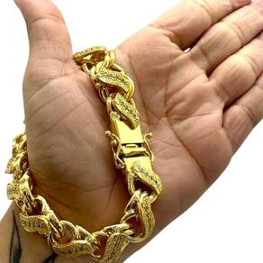 Pulseira Friso S 16mm Cravejada Banhado a Ouro 18K 750 Detalhes do Produto: Material: ligas metálicas de alta qualidade, especialmente tratadas para fixação e absorção do ouro, com acabamento em verniz protetor. Aparência: visual idêntico ao ouro maciço. Produção: artesanal, com atenção meticulosa aos detalhes. Banho: 10 camadas espessas de ouro 18k, finalizadas com verniz antialérgico . Elos: soldados varia conforme o modelo . Pedras: zircônias brilhantes cravejadas quando aplicável . Tamanhos Disponíveis: Cordões Masculinos: 70cm padrão e 60cm sob consulta/Pedido Via Chat . Cordões Femininos: 50cm padrão e 45cm sob consulta/Pedido Via Chat . Pulseiras: 21cm padrão ; tamanhos de 18cm a 23cm sob consulta/Pedido Via Chat. Pingentes: conforme imagens; consulte para mais detalhes via chat. Espessuras Recomendadas para Cordões / Pingentes: P: 1mm a 4mm M: 4mm a 8mm G: 6mm a 13mm Gg: 12mm a 18mm Incluso na Compra: Saquinho de organza para armazenamento seguro. Caixa elegante, perfeita para presente. Cupom de desconto para a próxima compra. Flyer com outros produtos da coleção. Carta de agradecimento personalizada. Adesivo da marca ToJoia18k. Informações Adicionais: : 6 meses termos acompanham o produto . Devolução: 7 dias para devolução sem questionamentos. Envio: despacho em até 24 horas úteis após confirmação do pagamento. Cuidados com a Peça: Evite contato com produtos químicos; aguarde o perfume secar antes de usar. Evite contato com shampoo, condicionadores e suor excessivo. Armazene em local seco, preferencialmente no saquinho de organza fornecido. Uso no mar e piscina é permitido; lave com água corrente e sabão neutro após. Por que Escolher a ToJoia18k Semi-joias luxuosas que combinam estilo, qualidade e sofisticação. Banho espesso de ouro 18k, garantindo brilho duradouro e acabamento impecável. Design exclusivo e produção artesanal, perfeitos para qualquer ocasião. Materiais premium que asseguram durabilidade. Ao escolher uma semi-joia ToJoia18k, você investe em qualidade, elegância e uma experiência única. Aguardamos sua compra Observação: pode ocorrer variação no fecho raramente . Imagens reais, sem edição. Qualquer dúvida, estamos à disposição para esclarecimentos. Marca: Não Informado Ean: 7896928686296