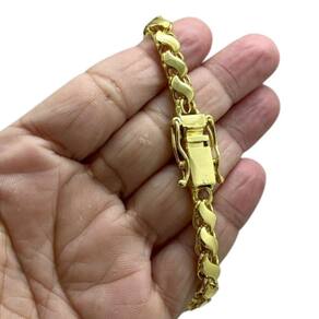 Pulseira Friso S 6mm Banhado a Ouro 18K Premium Detalhes do Produto: Material: ligas metálicas de alta qualidade, especialmente tratadas para fixação e absorção do ouro, com acabamento em verniz protetor. Aparência: visual idêntico ao ouro maciço. Produção: artesanal, com atenção meticulosa aos detalhes. Banho: 10 camadas espessas de ouro 18k, finalizadas com verniz antialérgico . Elos: soldados varia conforme o modelo . Pedras: zircônias brilhantes cravejadas quando aplicável . Tamanhos Disponíveis: Cordões Masculinos: 70cm padrão e 60cm sob consulta/Pedido Via Chat . Cordões Femininos: 50cm padrão e 45cm sob consulta/Pedido Via Chat . Pulseiras: 21cm padrão ; tamanhos de 18cm a 23cm sob consulta/Pedido Via Chat. Pingentes: conforme imagens; consulte para mais detalhes via chat. Espessuras Recomendadas para Cordões / Pingentes: P: 1mm a 4mm M: 4mm a 8mm G: 6mm a 13mm Gg: 12mm a 18mm Incluso na Compra: Saquinho de organza para armazenamento seguro. Caixa elegante, perfeita para presente. Cupom de desconto para a próxima compra. Flyer com outros produtos da coleção. Carta de agradecimento personalizada. Adesivo da marca ToJoia18k. Informações Adicionais: : 6 meses termos acompanham o produto . Devolução: 7 dias para devolução sem questionamentos. Envio: despacho em até 24 horas úteis após confirmação do pagamento. Cuidados com a Peça: Evite contato com produtos químicos; aguarde o perfume secar antes de usar. Evite contato com shampoo, condicionadores e suor excessivo. Armazene em local seco, preferencialmente no saquinho de organza fornecido. Uso no mar e piscina é permitido; lave com água corrente e sabão neutro após. Por que Escolher a ToJoia18k Semi-joias luxuosas que combinam estilo, qualidade e sofisticação. Banho espesso de ouro 18k, garantindo brilho duradouro e acabamento impecável. Design exclusivo e produção artesanal, perfeitos para qualquer ocasião. Materiais premium que asseguram durabilidade. Ao escolher uma semi-joia ToJoia18k, você investe em qualidade, elegância e uma experiência única. Aguardamos sua compra Observação: pode ocorrer variação no fecho raramente . Imagens reais, sem edição. Qualquer dúvida, estamos à disposição para esclarecimentos. Marca: Não Informado