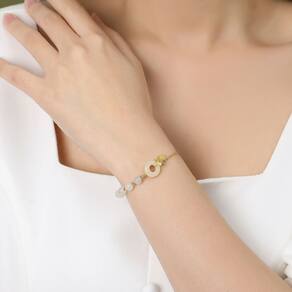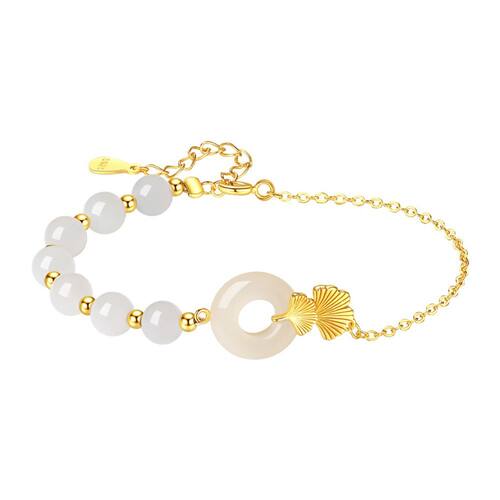 Tamanho: diâmetro do cordão 6 mm, perímetro 15+4 cm Peso: 6 g Material: fivela de paz simbólica de prata/nefrite S925 — apresenta um anel central de jade hetiano conhecido como “fivela da paz”, simbolizando harmonia, proteção e beleza atemporal. Acento em folha de ginkgo — embelezado com um motivo de folha de ginkgo dourado, representando longevidade e resiliência no design cultural oriental. Miçangas lisas de 6 mm — Feitas com nefrite branca e espaçadores dourados, oferecendo um brilho limpo, macio e uma textura graciosa. Base de prata esterlina 925 — Construída com corrente de prata durável e fecho de lagosta, combinando elegância e uso duradouro sem desbotar. Estética oriental moderna — Uma pulseira refinada de pequenos lotes que combina símbolos espirituais e estilo minimalista, ideal para uso diário ou acessórios cuidadosos.
