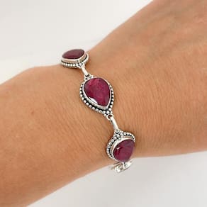 Pulseira Gotas Pedra Rubi Indiano Prata 925 Pulseira Gotas Pedra Rubi Indiano Prata 925 19,5cm - Pulseira Gotas Pedra Rubi Indiano Prata 925 Encante-se com a elegância da pulseira feminina em Prata 925 com gotas de Rubi indiano. Cada detalhe desta peça foi cuidadosamente trabalhado: as pedras naturais em formato de gota possuem tonalidade intensa e marcante, realçadas por uma delicada moldura de prata de Bali com acabamento artesanal. Uma joia sofisticada e atemporal, perfeita para quem deseja expressar sua personalidade com charme e estilo.