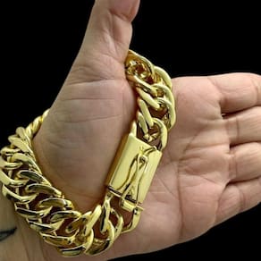Pulseira Grumet 20mm Banhado a Ouro 18K Detalhes do Produto: Material: ligas metálicas de alta qualidade, especialmente tratadas para fixação e absorção do ouro, com acabamento em verniz protetor. Aparência: visual idêntico ao ouro maciço. Produção: artesanal, com atenção meticulosa aos detalhes. Banho: 10 camadas espessas de ouro 18k, finalizadas com verniz antialérgico . Elos: soldados varia conforme o modelo . Pedras: zircônias brilhantes cravejadas quando aplicável . Tamanhos Disponíveis: Cordões Masculinos: 70cm padrão e 60cm sob consulta/Pedido Via Chat . Cordões Femininos: 50cm padrão e 45cm sob consulta/Pedido Via Chat . Pulseiras: 21cm padrão ; tamanhos de 18cm a 23cm sob consulta/Pedido Via Chat. Pingentes: conforme imagens; consulte para mais detalhes via chat. Espessuras Recomendadas para Cordões / Pingentes: P: 1mm a 4mm M: 4mm a 8mm G: 6mm a 13mm Gg: 12mm a 18mm Incluso na Compra: Saquinho de organza para armazenamento seguro. Caixa elegante, perfeita para presente. Cupom de desconto para a próxima compra. Flyer com outros produtos da coleção. Carta de agradecimento personalizada. Adesivo da marca ToJoia18k. Informações Adicionais: : 6 meses termos acompanham o produto . Devolução: 7 dias para devolução sem questionamentos. Envio: despacho em até 24 horas úteis após confirmação do pagamento. Cuidados com a Peça: Evite contato com produtos químicos; aguarde o perfume secar antes de usar. Evite contato com shampoo, condicionadores e suor excessivo. Armazene em local seco, preferencialmente no saquinho de organza fornecido. Uso no mar e piscina é permitido; lave com água corrente e sabão neutro após. Por que Escolher a ToJoia18k Semi-joias luxuosas que combinam estilo, qualidade e sofisticação. Banho espesso de ouro 18k, garantindo brilho duradouro e acabamento impecável. Design exclusivo e produção artesanal, perfeitos para qualquer ocasião. Materiais premium que asseguram durabilidade. Ao escolher uma semi-joia ToJoia18k, você investe em qualidade, elegância e uma experiência única. Aguardamos sua compra Observação: pode ocorrer variação no fecho raramente . Imagens reais, sem edição. Qualquer dúvida, estamos à disposição para esclarecimentos.