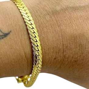 Pulseira Grumet Cubano 7mm Banhado a Ouro 18K Detalhes do Produto: Material: ligas metálicas de alta qualidade, especialmente tratadas para fixação e absorção do ouro, com acabamento em verniz protetor. Aparência: visual idêntico ao ouro maciço. Produção: artesanal, com atenção meticulosa aos detalhes. Banho: 10 camadas espessas de ouro 18k, finalizadas com verniz antialérgico . Elos: soldados varia conforme o modelo . Pedras: zircônias brilhantes cravejadas quando aplicável . Tamanhos Disponíveis: Cordões Masculinos: 70cm padrão e 60cm sob consulta/Pedido Via Chat . Cordões Femininos: 50cm padrão e 45cm sob consulta/Pedido Via Chat . Pulseiras: 21cm padrão ; tamanhos de 18cm a 23cm sob consulta/Pedido Via Chat. Pingentes: conforme imagens; consulte para mais detalhes via chat. Espessuras Recomendadas para Cordões / Pingentes: P: 1mm a 4mm M: 4mm a 8mm G: 6mm a 13mm Gg: 12mm a 18mm Incluso na Compra: Saquinho de organza para armazenamento seguro. Caixa elegante, perfeita para presente. Cupom de desconto para a próxima compra. Flyer com outros produtos da coleção. Carta de agradecimento personalizada. Adesivo da marca ToJoia18k. Informações Adicionais: : 6 meses termos acompanham o produto . Devolução: 7 dias para devolução sem questionamentos. Envio: despacho em até 24 horas úteis após confirmação do pagamento. Cuidados com a Peça: Evite contato com produtos químicos; aguarde o perfume secar antes de usar. Evite contato com shampoo, condicionadores e suor excessivo. Armazene em local seco, preferencialmente no saquinho de organza fornecido. Uso no mar e piscina é permitido; lave com água corrente e sabão neutro após. Por que Escolher a ToJoia18k Semi-joias luxuosas que combinam estilo, qualidade e sofisticação. Banho espesso de ouro 18k, garantindo brilho duradouro e acabamento impecável. Design exclusivo e produção artesanal, perfeitos para qualquer ocasião. Materiais premium que asseguram durabilidade. Ao escolher uma semi-joia ToJoia18k, você investe em qualidade, elegância e uma experiência única. Aguardamos sua compra Observação: pode ocorrer variação no fecho raramente . Imagens reais, sem edição. Qualquer dúvida, estamos à disposição para esclarecimentos. Marca: Não Informado