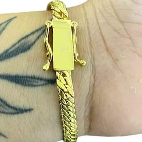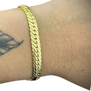 Pulseira Grumet Cubano 7mm Banhado a Ouro 18K Detalhes do Produto: Material: ligas metálicas de alta qualidade, especialmente tratadas para fixação e absorção do ouro, com acabamento em verniz protetor. Aparência: visual idêntico ao ouro maciço. Produção: artesanal, com atenção meticulosa aos detalhes. Banho: 10 camadas espessas de ouro 18k, finalizadas com verniz antialérgico . Elos: soldados varia conforme o modelo . Pedras: zircônias brilhantes cravejadas quando aplicável . Tamanhos Disponíveis: Cordões Masculinos: 70cm padrão e 60cm sob consulta/Pedido Via Chat . Cordões Femininos: 50cm padrão e 45cm sob consulta/Pedido Via Chat . Pulseiras: 21cm padrão ; tamanhos de 18cm a 23cm sob consulta/Pedido Via Chat. Pingentes: conforme imagens; consulte para mais detalhes via chat. Espessuras Recomendadas para Cordões / Pingentes: P: 1mm a 4mm M: 4mm a 8mm G: 6mm a 13mm Gg: 12mm a 18mm Incluso na Compra: Saquinho de organza para armazenamento seguro. Caixa elegante, perfeita para presente. Cupom de desconto para a próxima compra. Flyer com outros produtos da coleção. Carta de agradecimento personalizada. Adesivo da marca ToJoia18k. Informações Adicionais: : 6 meses termos acompanham o produto . Devolução: 7 dias para devolução sem questionamentos. Envio: despacho em até 24 horas úteis após confirmação do pagamento. Cuidados com a Peça: Evite contato com produtos químicos; aguarde o perfume secar antes de usar. Evite contato com shampoo, condicionadores e suor excessivo. Armazene em local seco, preferencialmente no saquinho de organza fornecido. Uso no mar e piscina é permitido; lave com água corrente e sabão neutro após. Por que Escolher a ToJoia18k Semi-joias luxuosas que combinam estilo, qualidade e sofisticação. Banho espesso de ouro 18k, garantindo brilho duradouro e acabamento impecável. Design exclusivo e produção artesanal, perfeitos para qualquer ocasião. Materiais premium que asseguram durabilidade. Ao escolher uma semi-joia ToJoia18k, você investe em qualidade, elegância e uma experiência única. Aguardamos sua compra Observação: pode ocorrer variação no fecho raramente . Imagens reais, sem edição. Qualquer dúvida, estamos à disposição para esclarecimentos. Marca: Não Informado