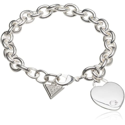 Pulseira GUESS “Basic” Silver com logotipo G, 7,5" — Pulseira robusta com corrente de elos com pingente de coração plano e fecho em forma de garra de lagosta — Importada