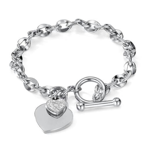 Tamanho: 180 mm Peso: 14 g Material: aço inoxidável Design chique de pingente de coração — pingente de coração duplo com uma estrutura em camadas, uma com detalhes cintilantes, adiciona elegância e personalidade. Construção durável em aço inoxidável — Feito de aço inoxidável de alta qualidade, resistente à ferrugem, manchas e descoloração. Fecho OT moderno — apresenta um fecho de alavanca fácil de usar para fixação segura e uma declaração de moda moderna. Acabamento de alto brilho — A superfície espelhada oferece uma aparência limpa e luxuosa, adequada para várias roupas. Acessório versátil para uso diário — ideal para ocasiões casuais, de trabalho ou noturnas, aprimorando qualquer look com o mínimo esforço.