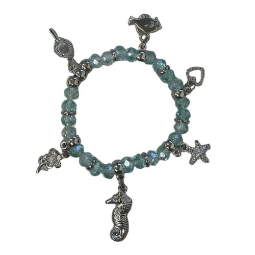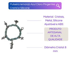 Pulseira Iemanjá Azul Claro Pingentes Cristal e Silicone