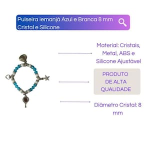 Pulseira Iemanjá Azul e Branca 8 mm Cristal e Silicone Pulseira Iemanjá Azul e Branca 8 mm Cristal e Silicone