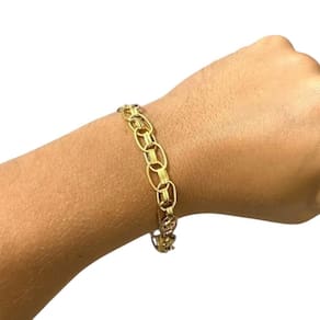 Pulseira Imperador 10mm Banhado a Ouro 18K Luxo Detalhes do Produto: Material: ligas metálicas de alta qualidade, especialmente tratadas para fixação e absorção do ouro, com acabamento em verniz protetor. Aparência: visual idêntico ao ouro maciço. Produção: artesanal, com atenção meticulosa aos detalhes. Banho: 10 camadas espessas de ouro 18k, finalizadas com verniz antialérgico . Elos: soldados varia conforme o modelo . Pedras: zircônias brilhantes cravejadas quando aplicável . Tamanhos Disponíveis: Cordões Masculinos: 70cm padrão e 60cm sob consulta/Pedido Via Chat . Cordões Femininos: 50cm padrão e 45cm sob consulta/Pedido Via Chat . Pulseiras: 21cm padrão ; tamanhos de 18cm a 23cm sob consulta/Pedido Via Chat. Pingentes: conforme imagens; consulte para mais detalhes via chat. Espessuras Recomendadas para Cordões / Pingentes: P: 1mm a 4mm M: 4mm a 8mm G: 6mm a 13mm Gg: 12mm a 18mm Incluso na Compra: Saquinho de organza para armazenamento seguro. Caixa elegante, perfeita para presente. Cupom de desconto para a próxima compra. Flyer com outros produtos da coleção. Carta de agradecimento personalizada. Adesivo da marca ToJoia18k. Informações Adicionais: : 6 meses termos acompanham o produto . Devolução: 7 dias para devolução sem questionamentos. Envio: despacho em até 24 horas úteis após confirmação do pagamento. Cuidados com a Peça: Evite contato com produtos químicos; aguarde o perfume secar antes de usar. Evite contato com shampoo, condicionadores e suor excessivo. Armazene em local seco, preferencialmente no saquinho de organza fornecido. Uso no mar e piscina é permitido; lave com água corrente e sabão neutro após. Por que Escolher a ToJoia18k Semi-joias luxuosas que combinam estilo, qualidade e sofisticação. Banho espesso de ouro 18k, garantindo brilho duradouro e acabamento impecável. Design exclusivo e produção artesanal, perfeitos para qualquer ocasião. Materiais premium que asseguram durabilidade. Ao escolher uma semi-joia ToJoia18k, você investe em qualidade, elegância e uma experiência única. Aguardamos sua compra Observação: pode ocorrer variação no fecho raramente . Imagens reais, sem edição. Qualquer dúvida, estamos à disposição para esclarecimentos.