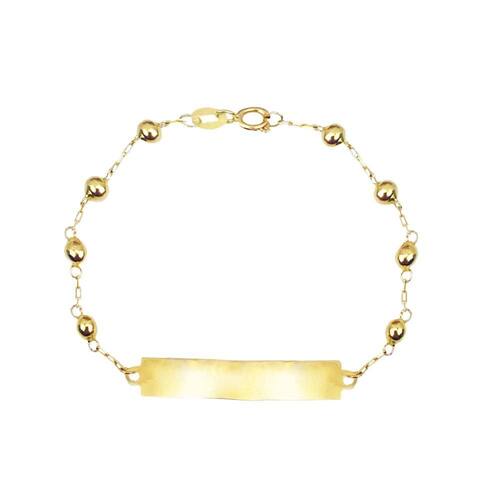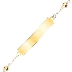 A pulseira Infantil em Ouro 18K é uma demonstração de carinho, afeto e amor à vida que surge. A sua chapa de 2,5cm também transmite o desejo de vida longa, com muita prosperidade E para dar um toque de delicadeza 8 bolinhas também de Ouro 18K