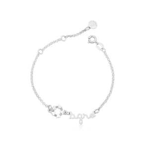 Com um círculo de corações e pequenos cristais, traz a palavra agro e recebe revestimento em Prata. Uma peça versátil, confortável e cheia de significados. Em corrente de elos portugueses, possui 3 opções de ajuste!