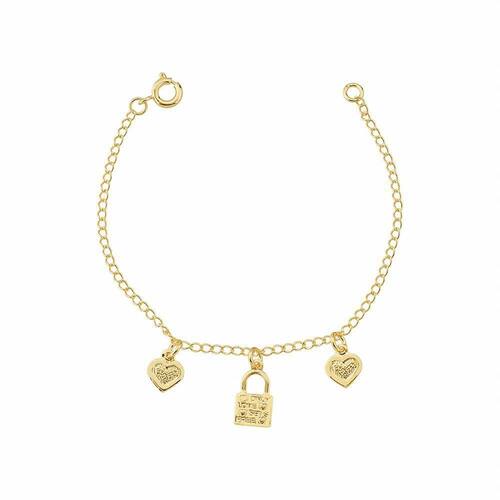 Pulseira infantil Armazem RR Bijoux cadeado coração ouro Folheado a banho 18K Tamanho pulseira aberta: 13,5cm A pulseira infantil Armazem RR Bijoux cadeado coração ouro é um acessório infantil delicado que traz muito charme para as nossas crianças. Nossa loja oferece de 01 ano em todas as peças. Especificações: Marca: Armazem RR Bijoux Modelo: Pulseira Cor: Dourado Folheado a banho 18K Tamanho pulseira aberta: 13,5cm Sobre a marca: A Armazém RR Bijoux é uma loja de Bijuterias finas e Semi-jóias que valoriza a excelência no atendimento, a qualidade dos nossos produtos e a agilidade na entrega. Nossa loja oferece também peças com o Cristal Swarovski da designer Alessandra Diana. Aqui você compra com segurança e praticidade peças que com certeza farão a diferença na composição do seu look. Marca: Não Informado