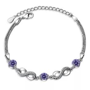 Linda pulseira Infinite amatistaplata 925 com proteção galvanizada em ródio\ N Para uso em qualquer ocasião, ótima para presentes. Pulseira longa\ n17-21cm\ NaProxanti alérgica, sem níquel, sem poluição. Fácil de manter e limpar\ nInstruções de limpeza: limpe com um pano de polimento de joias de prata, pelo menos uma vez por semana para manter a joia brilhante e evitar a deterioração\ nRecomendação de uso: Não use produtos de prata em praias, piscinas, chuveiros, pois a água contém cloro ou outros minerais que afetam a aparência das joias. Caixa de presente incluída