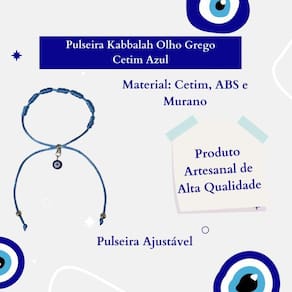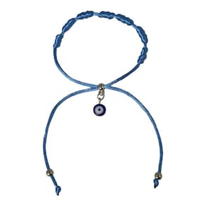 Pulseira Kabbalah Olho Grego Cetim Azul 100%