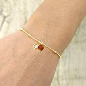 Esta pulseira foi elaborada com um lindo charm que representa a beleza das macadâmias, junto à uma corrente veneziana com esferas, revestida em Ouro. Uma peça única e delicada, capaz de representar toda riqueza desse fruto.