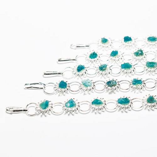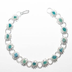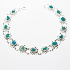 Encante-se com a delicadeza da pulseira de Margarida Apatita Azul Natural. Beleza e elegância em um acessório prateado com pedras genuínas.