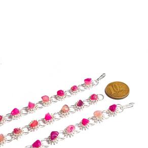 Observação sobre a Pedra:Como a Ágata Rosa é uma pedra natural, ela pode apresentar variações em tonalidades e grafismos. Pequenas inclusões e fissuras podem ocorrer, o que é normal em minerais autênticos de garimpo. Aconselha-se hidratar a pedra com óleo mineral para manter sua beleza. Compre agora e adicione um toque de elegância ao seu estilo com a Pulseira Margarida com Ágata Rosa! Marca: CristaisdeCurvelo
