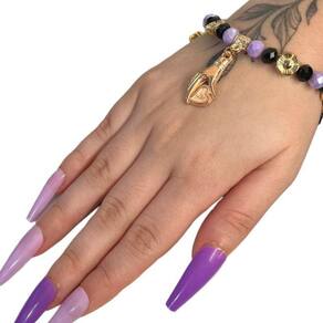A Pulseira Maria Mulambo Roxo Penduricalhos Cristal Silicone da Bialluz possui pedras de alta qualidade feitas de forma artesanal com muito carinho. Com tamanho único, mas muito versátil por conta do silicone, é perfeita para qualquer pessoa. Cheia de boas energias e carregada de fé nossa pulseira emanará muita paz em sua vida