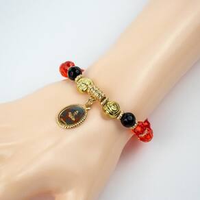 Pulseira Maria Padilha Preto Vermelho Medalha Cristal S.