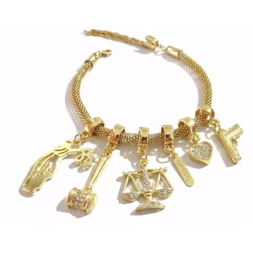 Pulseira Martelo Justiça Advogada Arma Coração Folheado