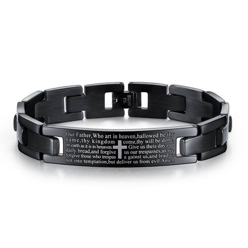 Tamanho: 20 cm Peso: 45 g Material: aço inoxidável Design inspirado na fé — apresenta a Oração do Senhor completa gravada a laser em uma elegante placa de aço inoxidável preta, destacando devoção e força. Construção durável em aço inoxidável — Fabricada em aço inoxidável de alta qualidade para uma estrutura sólida e resistente à corrosão que mantém sua aparência ao longo do tempo. Ajuste confortável e seguro — 20 cm de comprimento com um fecho dobrável seguro garante um uso confiável para uso diário ou ocasiões especiais. Acabamento preto ousado — A superfície em preto fosco polido adiciona um toque moderno e masculino que complementa tanto os estilos casuais quanto os formais. Acessório significativo para homens — ideal para expressar fé pessoal ou fazer uma declaração ousada de espiritualidade e força interior.