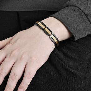Tamanho: 22 cm Peso: 60 g Material: aço inoxidável Design elegante em dois tons — apresenta uma combinação impressionante de revestimento preto e dourado com um acabamento estruturado e jateado para um apelo moderno. Estilo de pulseira em camadas — A construção em três camadas adiciona textura e profundidade, oferecendo uma experiência de pulso premium. Aço inoxidável durável — Feito de aço inoxidável de alta qualidade, resistente a manchas, ferrugem e desgaste, ideal para uso diário. Fecho dobrável seguro — equipado com um fecho forte e confiável para garantir um uso confortável e sem preocupações durante todo o dia. Peça versátil — perfeita para roupas casuais, roupas urbanas ou eventos estilosos que exijam acessórios ousados.
