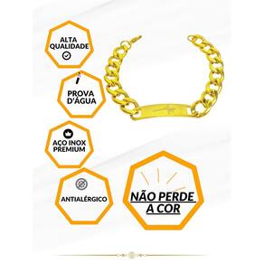 Pulseira masculina dourada grumet grossa placa escrito fé aço inox antialérgico prova d'água Pulseira masculina dourada grumet grossa placa escrito fé aço inox antialérgico prova d'água Pulseira modelo fígaro 3x1 em aço inox prata antialérgico a prova d'água. Com 10mm de espessura e 22cm de comprimento, é perfeito para pessoas de personalidade que amam estar na moda. Modelo com placa escrito fé. Pulseira para homens. Não perde a cor, não fica preto, não causa alergia. ====================================== Fotos reais do produto na galeria Detalhes técnicos: Marca: visujóias Modelo: pulseira fígaro Espessura corrente: 10mm Comprimento: 22cm Incluso: 1 unidade Material: aço inox Cor: prata Código do produto sku : 3442 : 6 meses. Todas as peças possuem tratamento antialérgico =================================================== P:minha compra é segura R:toda compra que é feita aqui está em ambiente seguro, isso significa que se caso ocorra algum imprevisto faremos o estorno. R: sim. P: produto é a prova d'água R: sim, pode usar em piscinas e praias que não escurece. P: tem R: sim, todos os nossos produtos tem de 6 meses, contra defeitos de fabricação. Todas as informações de cuidados são enviados junto com o produto. P: posta em quanto tempo P: posso trocar se não servir R: sim, enviamos nosso contato junto com o produto para orientação sobre troca. P: posso devolver se não gostar R: sim, caso não goste do produto é só entrar em contato conosco que iremos orientá-lo como efetuar a devolução. Dúvidas Pergunte à vontade, estamos aqui. ficaremos felizes em responder rapidamente. Aguardamos sua compra e estamos ao seu dispor : Marca: Não Informado Ean: 7732647218403