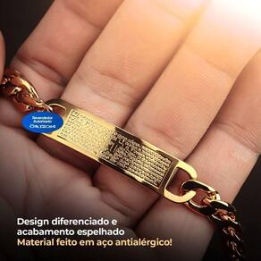Pulseira Masculina Dourada Ouro Oração Pai Nosso Ajustavel Presente Qualidade Premium Pulseira dourada Masculina com Oração Pai Nosso Ajustável Leve para o seu pulso um toque de elegância e estilo com esta peça única, banhada a ouro e feita de aço inoxidável. Com um comprimento total de 20 cm, esta pulseira ajustável adapta-se confortavelmente a diferentes tamanhos, garantindo uma experiência personalizada.