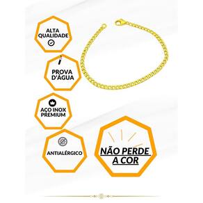 Pulseira masculina fininha dourada grumet cubana 1x1 2mm aço inox minimalista básica elegante Pulseira masculina fininha dourada grumet cubana 1x1 2mm aço inox minimalista básica elegante Pulseira modelo escama de peixe 1x1 grumet em aço inox dourada antialérgico a prova d'água. Com 2mm de espessura e 22,5cm de comprimento, é perfeito para pessoas de personalidade que amam estar na moda. Pulseira para homens. Não perde a cor, não fica preto, não causa alergia. ====================================== Fotos reais do produto na galeria Detalhes técnicos: Marca: visujóias Modelo: pulseira grumet Espessura corrente: 2mm Comprimento: 22,5cm Incluso: 1 unidade Material: aço inox Código do produto sku : 3514 : 6 meses. Todas as peças possuem tratamento antialérgico =================================================== P:minha compra é segura R:toda compra que é feita aqui está em ambiente seguro, isso significa que se caso ocorra algum imprevisto faremos o estorno. R: sim. P: produto é a prova d'água R: sim, pode usar em piscinas e praias que não escurece. P: tem R: sim, todos os nossos produtos tem de 6 meses, contra defeitos de fabricação. Todas as informações de cuidados são enviados junto com o produto. P: posta em quanto tempo P: posso trocar se não servir R: sim, enviamos nosso contato junto com o produto para orientação sobre troca. P: posso devolver se não gostar R: sim, caso não goste do produto é só entrar em contato conosco que iremos orientá-lo como efetuar a devolução. Dúvidas Pergunte à vontade, estamos aqui. Ficaremos felizes em responder rapidamente. Aguardamos sua compra e estamos ao seu dispor : Marca: Não Informado Ean: 7732647216317