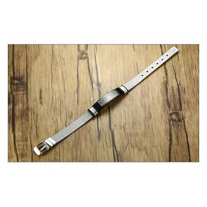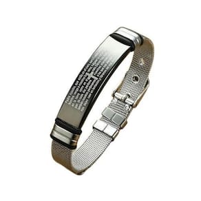 Pulseira Masculina Bracelete Malha de Aço Oração Pai Nosso em Espanhol
