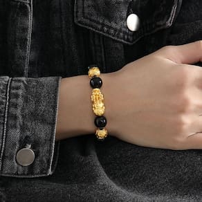 Tamanho: Diâmetro do cordão 11 mm Peso: 35 g Material: ObsidianAuthentic Obsidian Beads — Apresenta contas de obsidiana preta natural de 11 mm lisas e polidas, conhecidas pela energia protetora e aterradora, ideais para o equilíbrio espiritual diário. Símbolo Pixius prateado 999 — Inclui um pingente Pixius finamente detalhado e contas prateadas que simbolizam riqueza, proteção e boa sorte na cultura tradicional chinesa. Estética retrô ousada — combina herança espiritual com estilo vintage, tornando-a adequada para homens que apreciam acessórios significativos com personalidade. Ajuste elástico durável — Feito com cordão elástico de alta resistência para fácil uso e ajuste seguro na maioria dos tamanhos de pulso; perfeito para uso diário a longo prazo. Peça sazonal — Projetada para o estilo de outono e inverno, combina bem com roupas tradicionais e modernas, adicionando um toque masculino refinado.