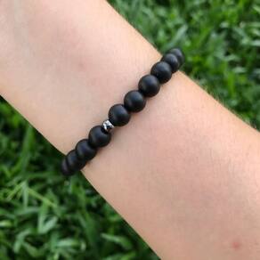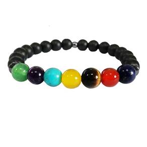 Características Pulseira Masculina Pedra Ágata Matte e 7 Chakras Material: A pulseira é fabricada em pedras naturais de 6mm, entremeios de metal na cor grafite. Presas por um elástico de silicone muito resistente.