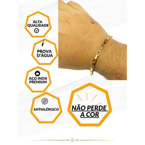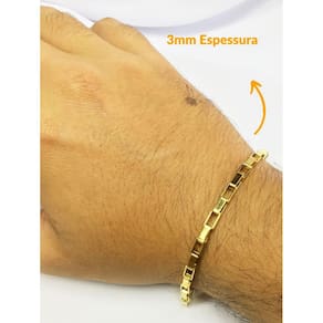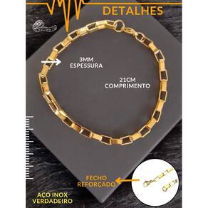 Pulseira modelo cadeado em aço inox dourado antialérgico a prova d'água. Com 3mm de espessura e 22cm de comprimento, é perfeito para pessoas de personalidade que amam estar na moda. Modelo em aço dourado escovado.