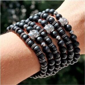 Pulseira Masculina Pedras Vulcânicas com Pingentes Separador em Aço. Ideal para composição de Pulseiras. Use Acessórios Masculinos e dê um Up no Look