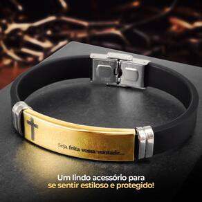 O uso de pulseiras tem crescido muito entre os homens, já que a moda masculina passou a abordar cada vez mais temas e acessórios diferenciados e com muita propriedade está explorando os religiosos. E certamente você vai se surpreender com a qualidade, beleza e o cuidado que tivemos com o acabamento dessa linda pulseira feita em silicone com placa na cor dourada gravada a laser a oração do Pai Nosso e fecho em trava de aço inoxidável, sem dúvida é o item que falta para completar seu visual. Seja você católico ou evangélico esse item é o ideal para você pois a classe e riqueza tanto física quanto espiritual desse objeto é fundamental para quem procura acrescentar algo na composição de seu estilo pessoal.